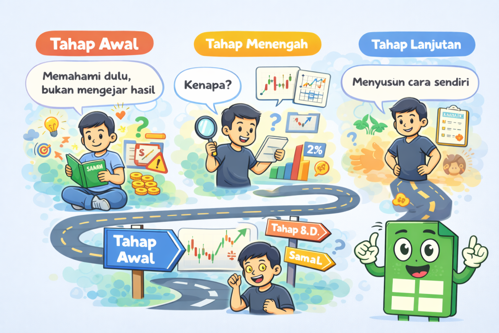 Belajar saham bukan tentang seberapa cepat sampai, tapi seberapa kuat fondasi yang kamu bangun. Dari pemula hingga lanjutan, setiap tahap punya perannya masing-masing. Melompati satu tahap mungkin terlihat mempercepat, tapi sering kali justru memperbesar risiko tersandung.